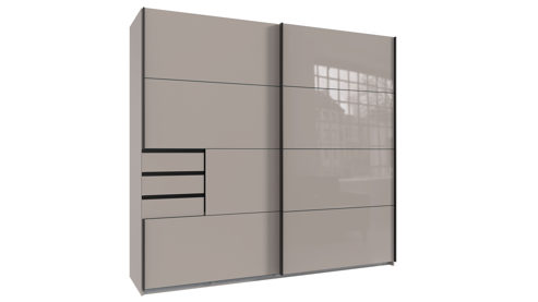 saharagraue Kunststoffoberfläche, kombiniert mit saharagrauer Glasfront