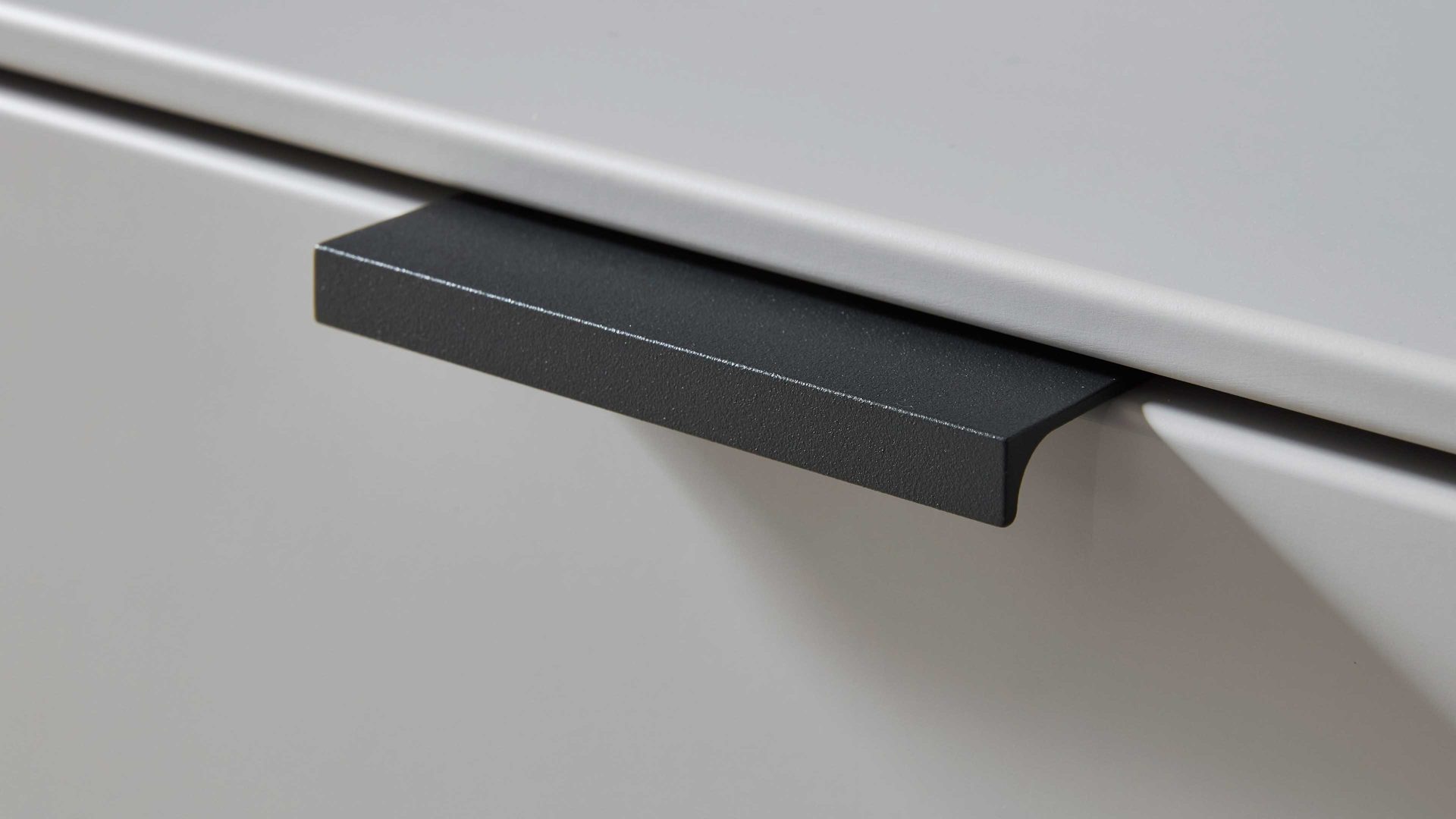 samtgraue Mattlackoberflächen und carbonfarben pulverbeschichtete Metallgriffe