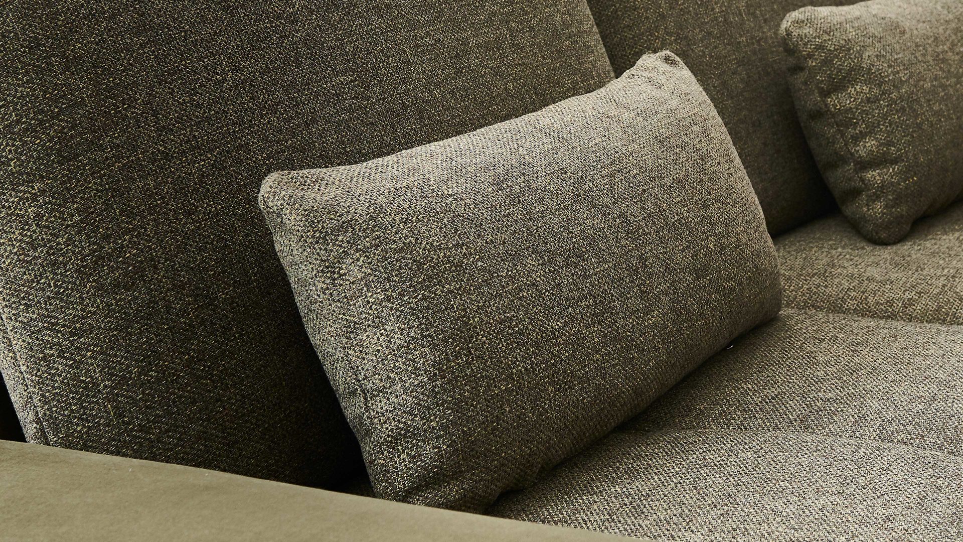 Mit dem trendigen und speziellen olivfarbenen Stoffbezug präsentiert sich das Kissen edel designt. Darüber hinaus ist es angenehm weich gepolstert. Seine Maße belaufen sich auf ca. 62 x 30 cm (BxL).