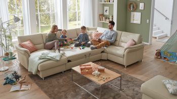 Beispielsweise profitieren Sie von einer attraktiven Bezugauswahl, wobei Sie Ihren bevorzugten Bezug gemeinhin mit oder ohne Kontrastnaht bestellen können. Des Weiteren sind sieben verschiedene Fußvarianten erhältlich. Was den Komfort betrifft, wählen Sie zwischen drei Sitzqualitäten - Kaltschaum, Federkern und gegen Aufpreis Boxspring - sowie zwei preisgleichen Sitzhöhen. Hinzu kommen diverse, wiederum gegen Mehrpreis ergänzbare Funktionen.