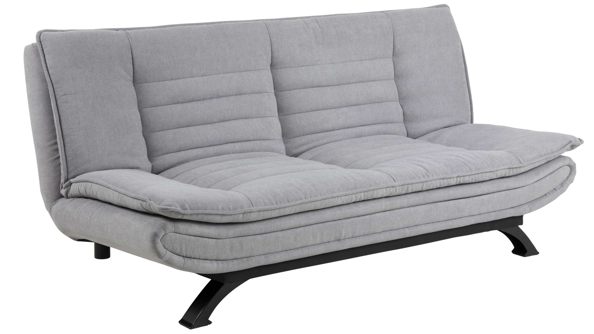 Das Schlafsofa Faith beeindruckt mit seinem modernen, eleganten Design sowie der Funktionalität, die es zu einem vielseitigen Polstermöbel macht. Für die nötige Standstabilität sorgen mattschwarz pulverbeschichtete Metallfüße. Der hellgraue Stoffbezug wirkt besonders stilvoll und fühlt sich darüber hinaus sehr angenehm an. Einen gelungenen Akzent setzt die Quersteppung der Sitz- und Rückenfläche. Der Rücken der Couch ist mit schwarzem Nesselstoff bezogen.