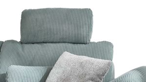 aquafarbener Cordbezug und Eiche biancofarbene Holzfüße