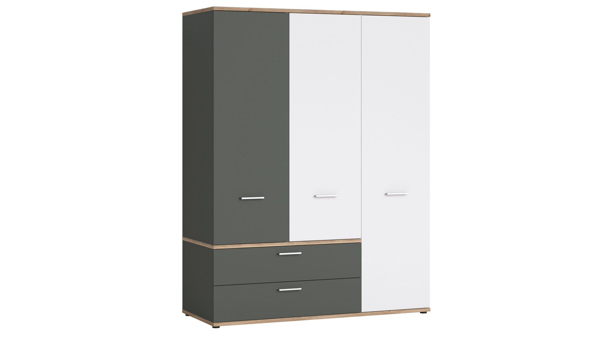 drei Türen, dahinter fünf Einlegeböden und zwei Kleiderstangen