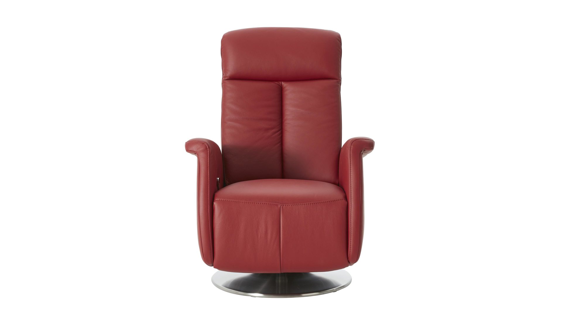 Der Modulmaster Relaxsessel MM-PN1035 kombiniert einen Edelstahl-Tellerfuß mit einem rossofarben pigmentierten Lederbezug auf der Rückenlehne D und der Armlehnvariante 2. Er strahlt intensive Eleganz aus und bringt warmes, einladendes Flair ins Wohnzimmer. Durch die erstklassigen, hervorragend verarbeiteten Materialien ist der modern designte Sessel robust und stabil, pflegeleicht und bei sorgsamer Behandlung besonders langlebig.
