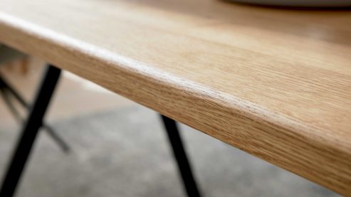 Der Esstisch aus der Interliving Esszimmer Serie 5115 bringt dir ein Stück Natur direkt ins Esszimmer. Die ca. 30 mm starke Tischplatte aus geölter astiger Eiche zeigt eine markante Maserung und ausgeprägte Astbildung, wodurch jede massive Holzplatte zu einem ganz eigenen Unikat wird – warm, lebendig und voller natürlichem Ausdruck.