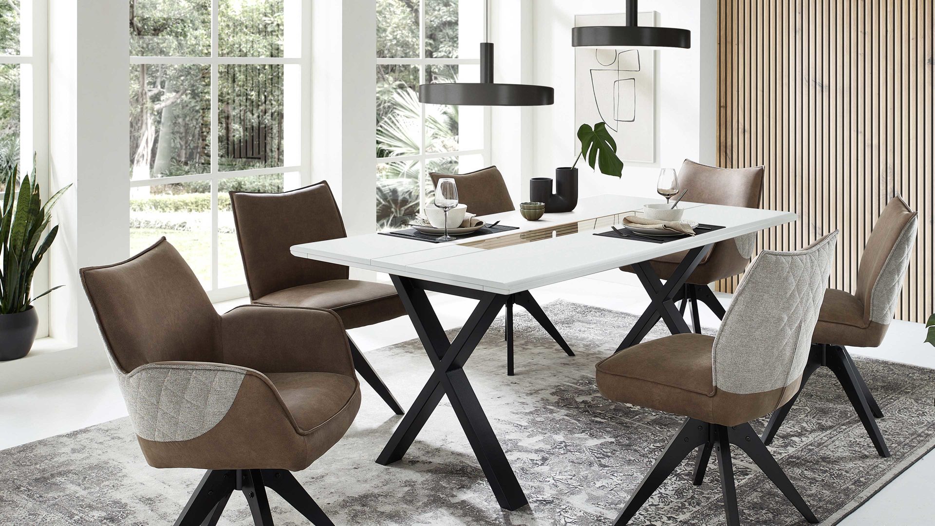 • Die Abbildung zeigt ein Wohnbeispiel, welches auch Dekoration sowie separat erhältliches Zubehör enthält. Im Lieferumfang enthalten ist ein Esstisch.