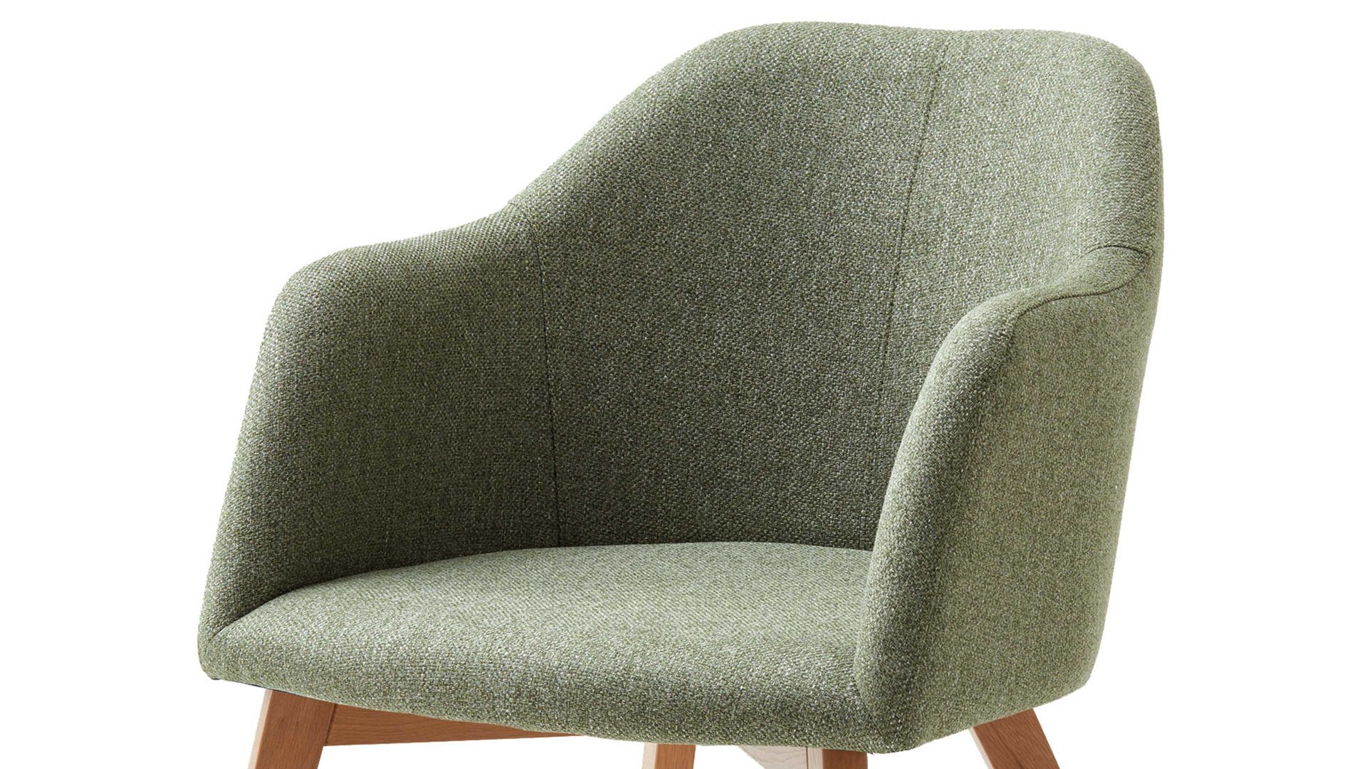 Darüber hinaus weiß er in puncto Komfort zu überzeugen. Lackierte Eichenholzfüße bilden die robuste Basis. Das natürliche Material sorgt einerseits für die nötige Stabilität und bringt andererseits ein warmes, einladendes Flair in den Raum. Attraktiv abgerundet wird der Vierfußstuhl durch den blassgrünen Webstoffbezug. Die außergewöhnliche Farbe wirkt überaus elegant und harmoniert vorzüglich mit den Holzfüßen. Einen feinen Akzent setzt die Steppnaht im Rücken des Schalensitzes.