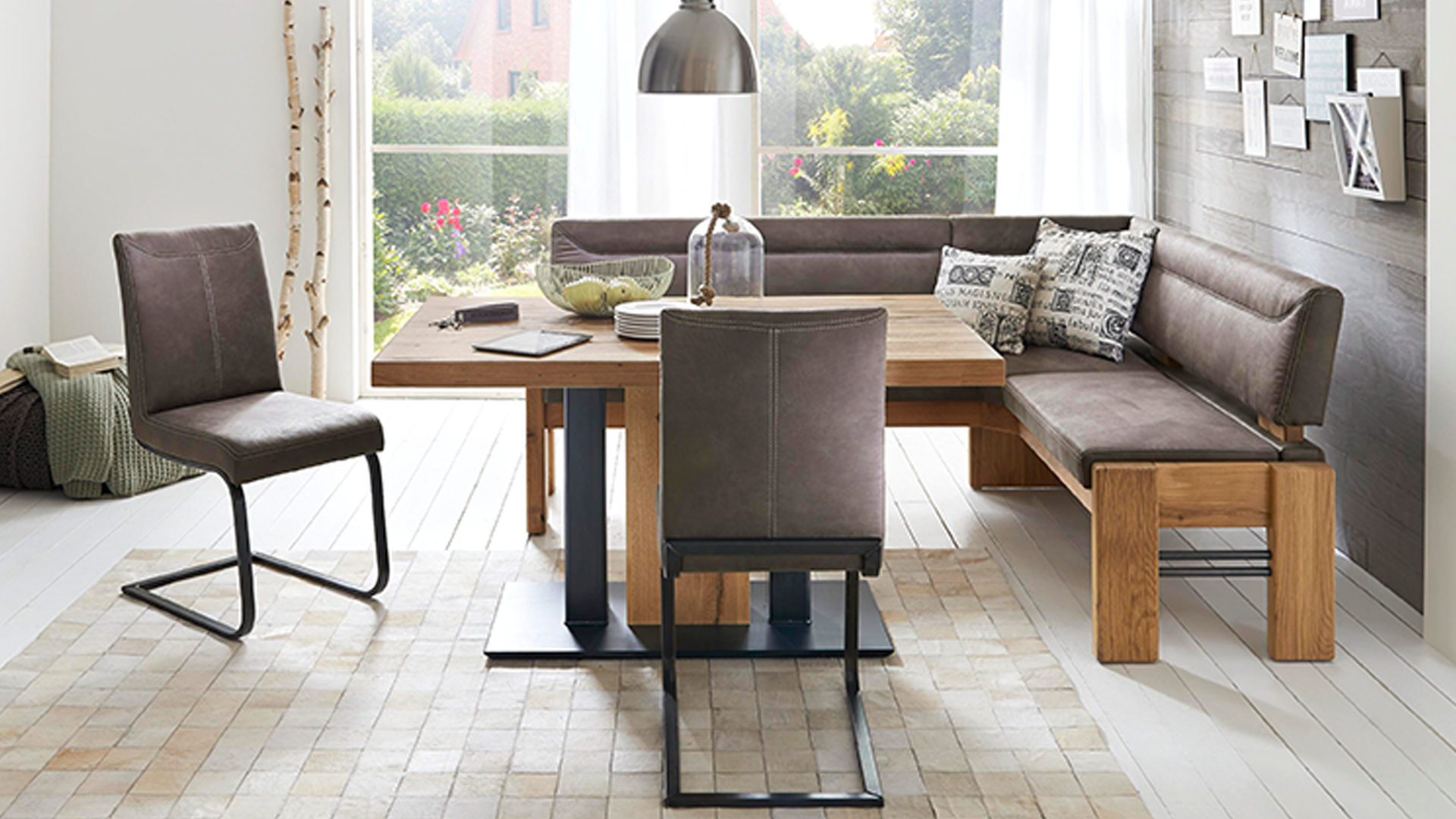 • Die Abbildung zeigt ein Wohnbeispiel, welches auch Dekoration sowie separat erhältliches Zubehör enthält. Im Lieferumfang enthalten ist der Schwingstuhl Gino.