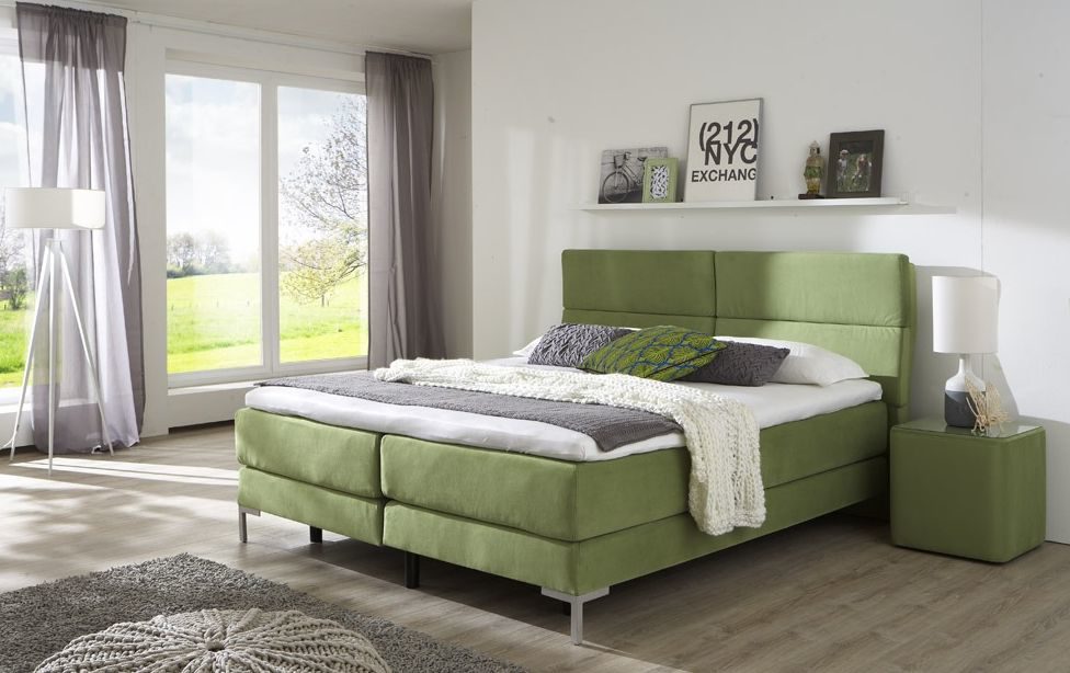 Das Boxspringbett in der Farbe Microfaser Grün in der Liegefläche 180x200cm