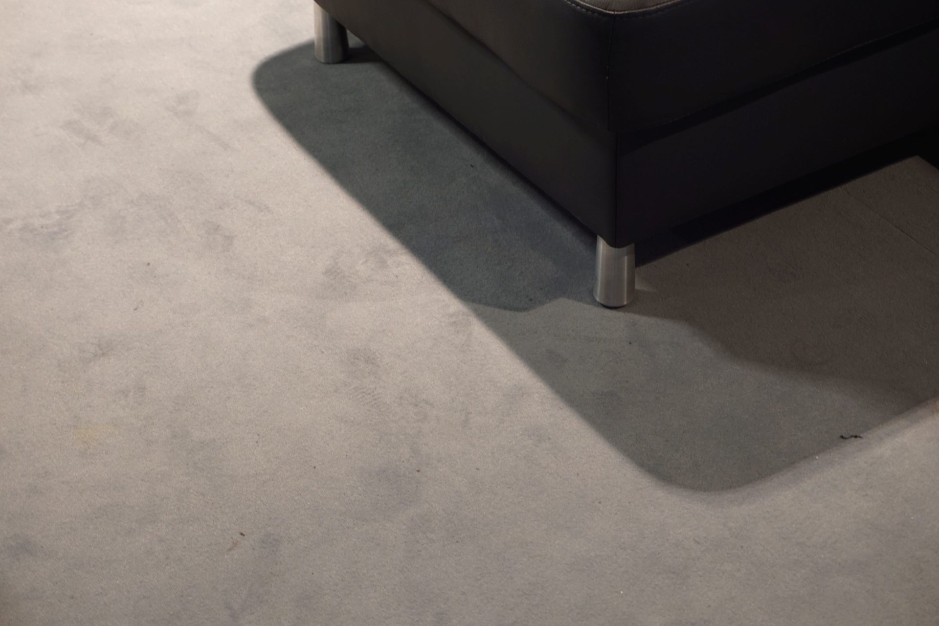 Die Wohnlandschaft in Leder Anthrazit mit einem Stellmaß von links nach rechts ist 1,68 x 3,05 x 2,35 m Rücken Echt und Fuss Metall gebürstet