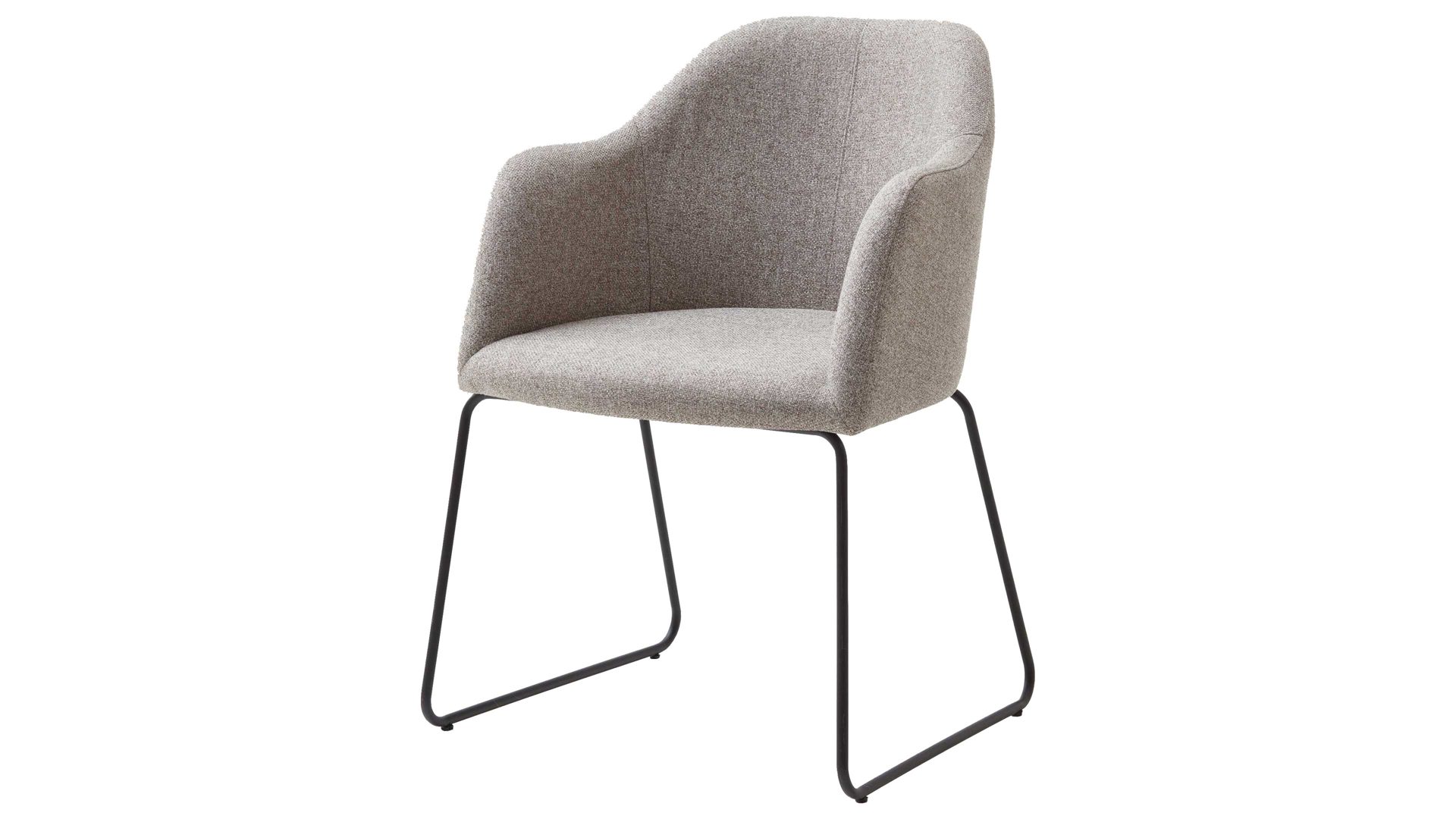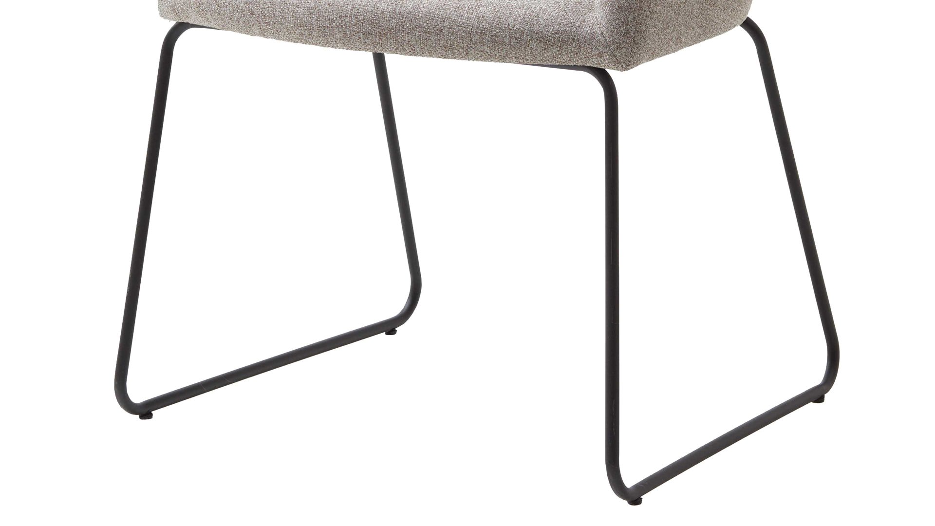 Darüber hinaus weiß er in puncto Komfort zu überzeugen. Ein schwarzes Stahldraht-Kufengestell bildet die robuste Basis. Das widerstandsfähige Material sorgt für die nötige Stabilität und die klassische Farbgebung bringt edles Flair in den Raum. Attraktiv abgerundet wird der Polsterstuhl durch den taupefarbenen Webstoffbezug. Die sanfte Trendfarbe wirkt äußerst elegant und schafft durch die helle Nuance einen interessanten Kontrast zum Gestell. Einen feinen Akzent setzt die Steppnaht im Rücken des Schalensitzes.
