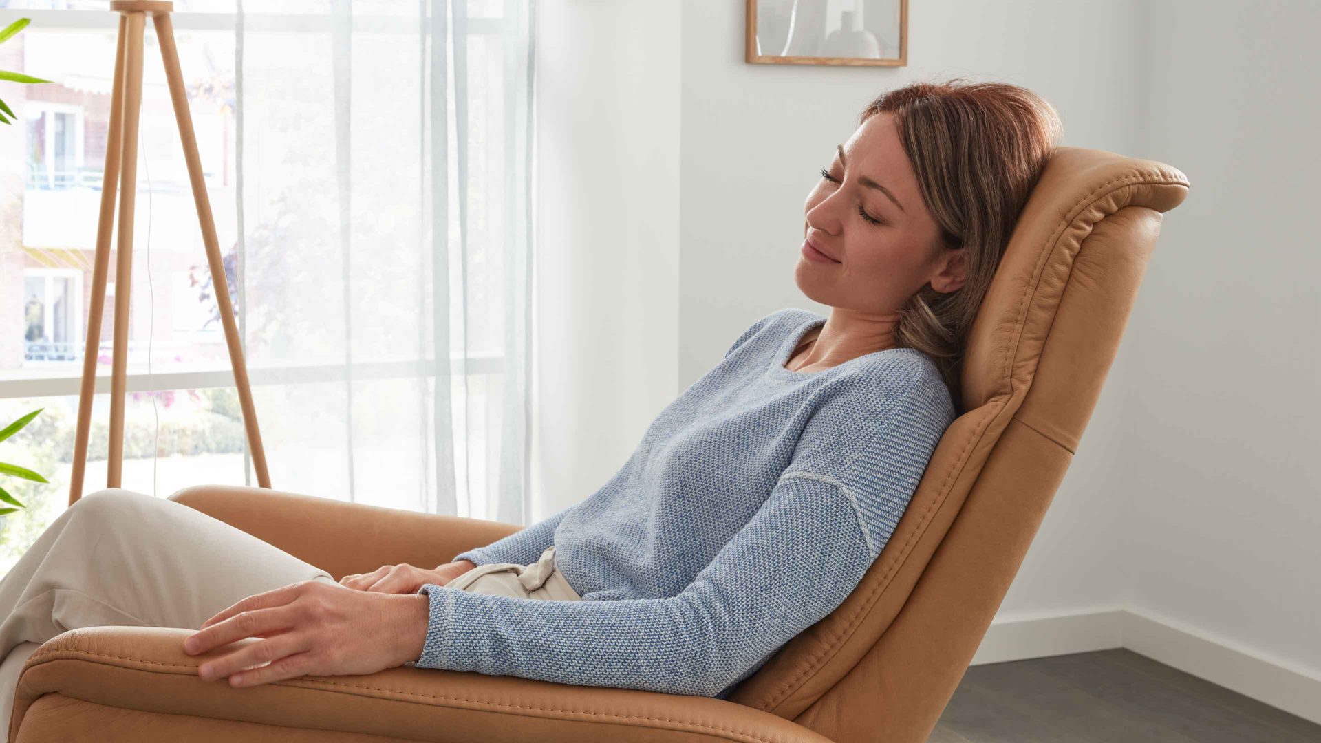 Das praktische Highlight des edlen Ledersessels bildet die manuelle Relaxfunktion: Indem Sie leichten Körperdruck anwenden, senkt sich der Rücken. Dabei geht der Sitz automatisch nach vorne und oben. Gleichzeitig fährt auch die Beinauflage nach oben, bis die Relaxposition erreicht ist.