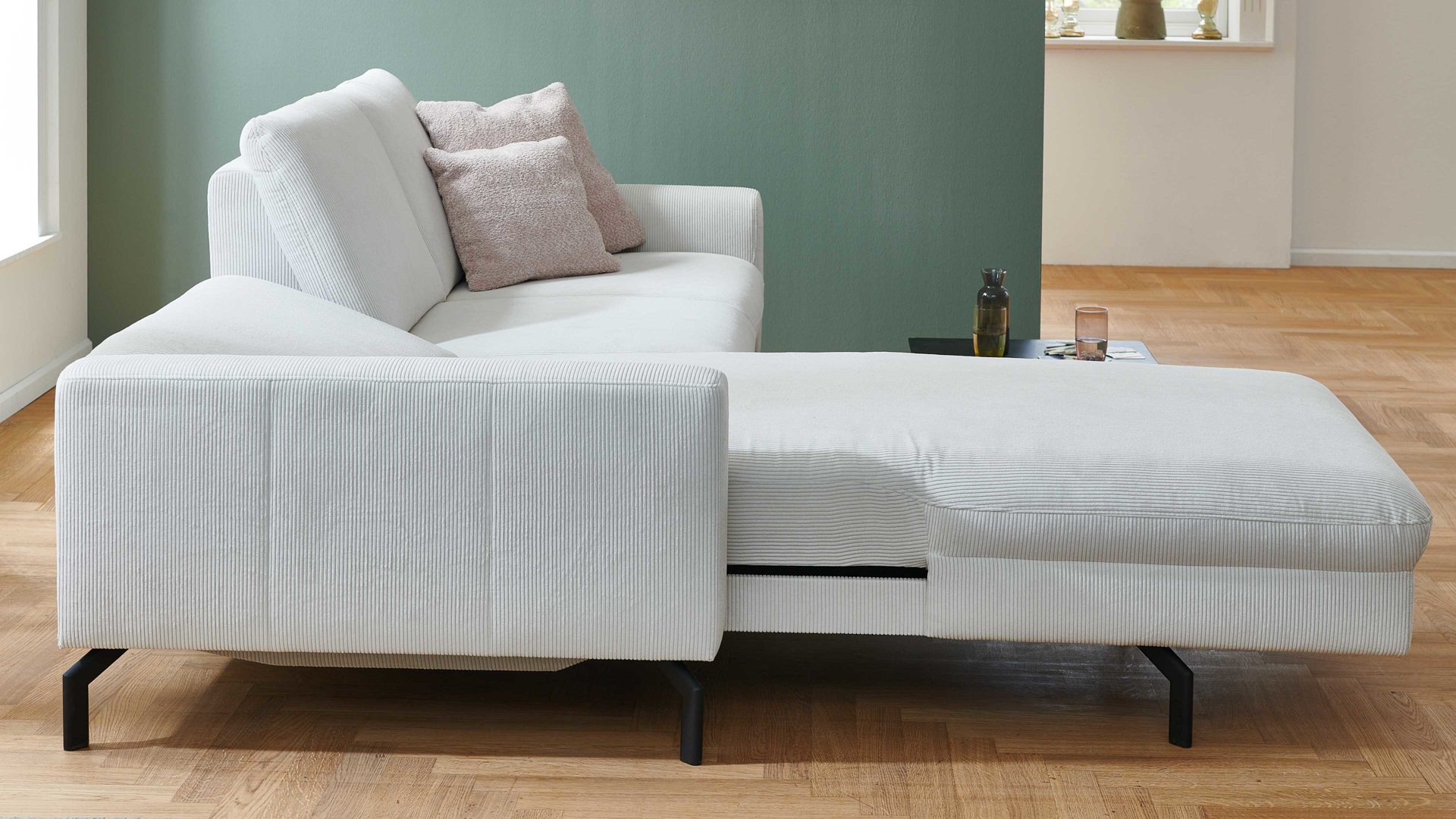 • Die Abbildung zeigt ein Wohnbeispiel, welches auch Dekoration sowie separat erhältliches Zubehör enthält. Im Lieferumfang enthalten ist eine motorische Liegefunktion MoLi.