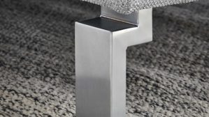 hellgrauer Flachgewebebezug und matt chromfarbene Metallfüße