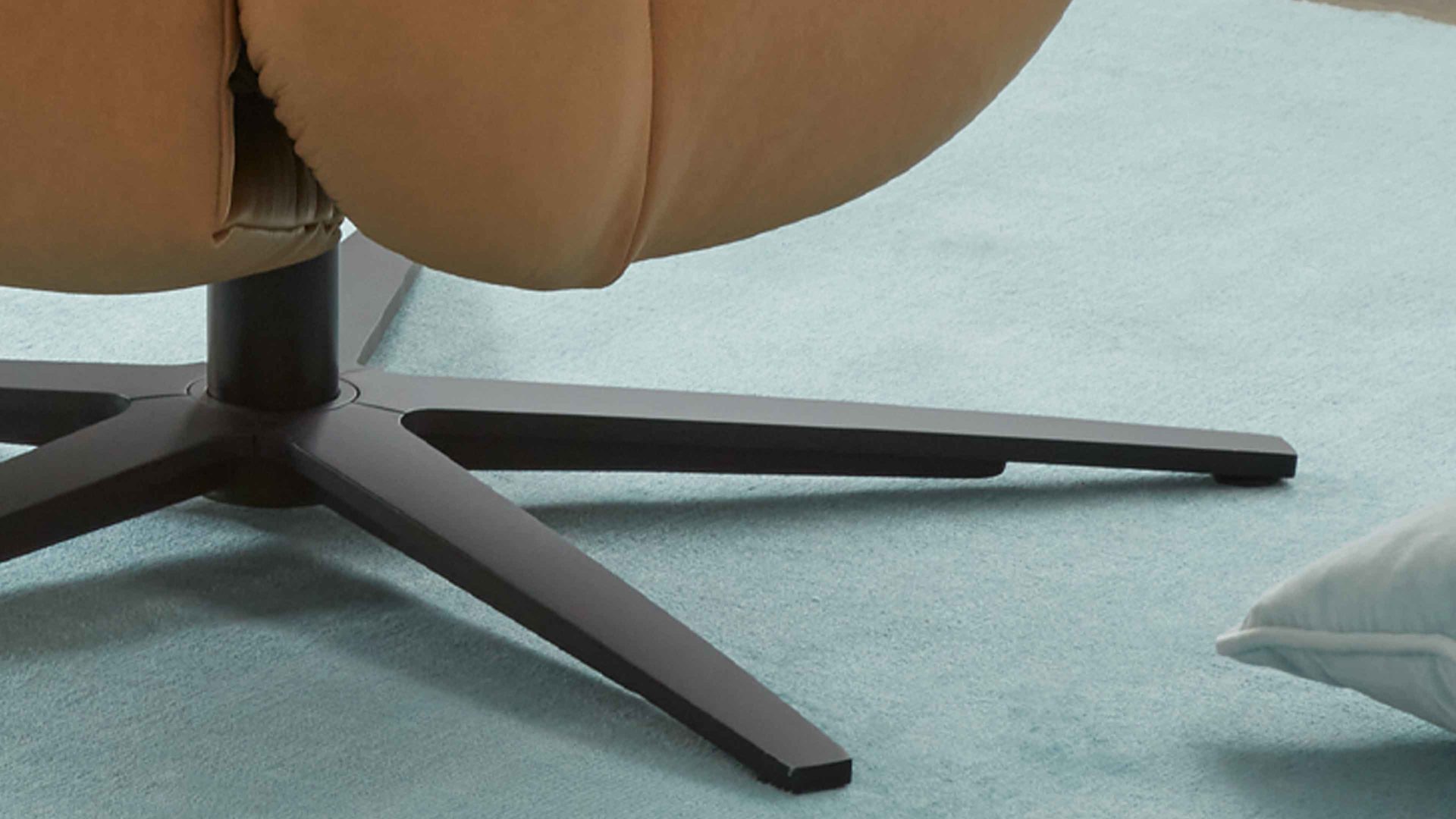Mit dem honigfarben pigmentierten Glattlederbezug samt Ton-in-Ton-Kappnaht strahlt er moderne Eleganz aus. Für hohe Standfestigkeit sorgt der mattschwarze Aluminium-Sternfuß V1S, der die Optik zudem harmonisch abrundet.