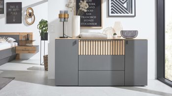 Die Kommode aus der Interliving Schlafzimmer Serie 1210 überzeugt durch ihr edles Design und ihre praktische Ausstattung. Die Fronten mit seidengrauen Glasauflagen strahlen moderne Ruhe aus, während der basaltfarben lackierte Korpus für Tiefe und Harmonie sorgt. Anthrazitfarbene Metallgriffe runden das hochwertige Gesamtbild stilvoll ab.