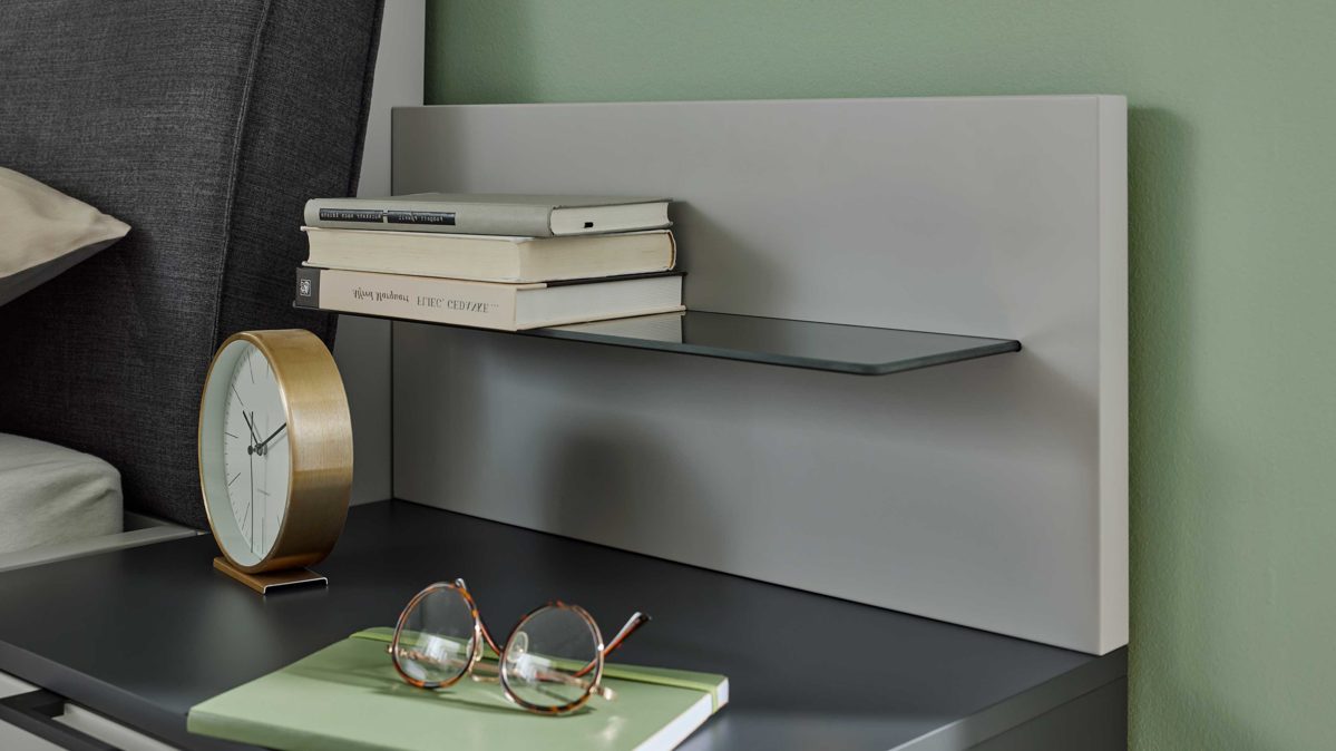 Mit Maßen von ca. 46 x 30 x 18 cm (B/LxHxT) bietet das Paneel eine praktische Ablagefläche für Bücher, Deko oder persönliche Gegenstände. Es wird linksseitig am Bett montiert und fügt sich harmonisch in das Gesamtkonzept der Serie ein.