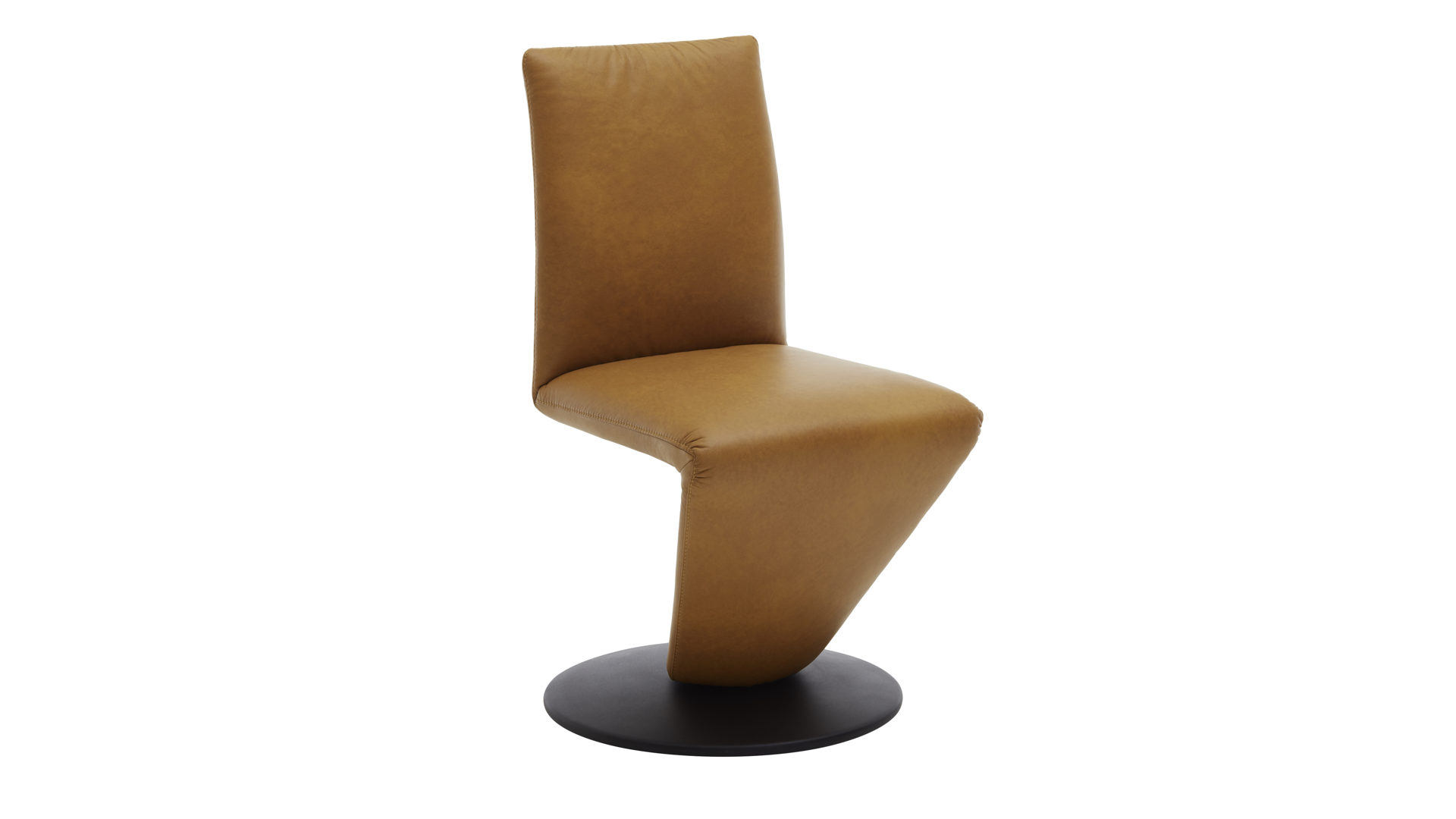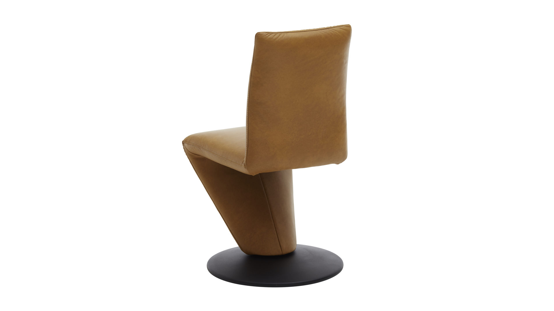 Er setzt sich aus einem schwarz pulverbeschichteten Metall-Tellerfuß mit Struktur und einem curcumafarbenen Lederbezug zusammen. Dank der perfekt aufeinander abgestimmten Materialien und Farben erscheint der Polsterstuhl absolut harmonisch und modern. Des Weiteren sorgen die geradlinige Formensprache, der hinten ebenfalls lederbezogene Rücken und die schicken Zierkappnähte für besonders nobles Flair.