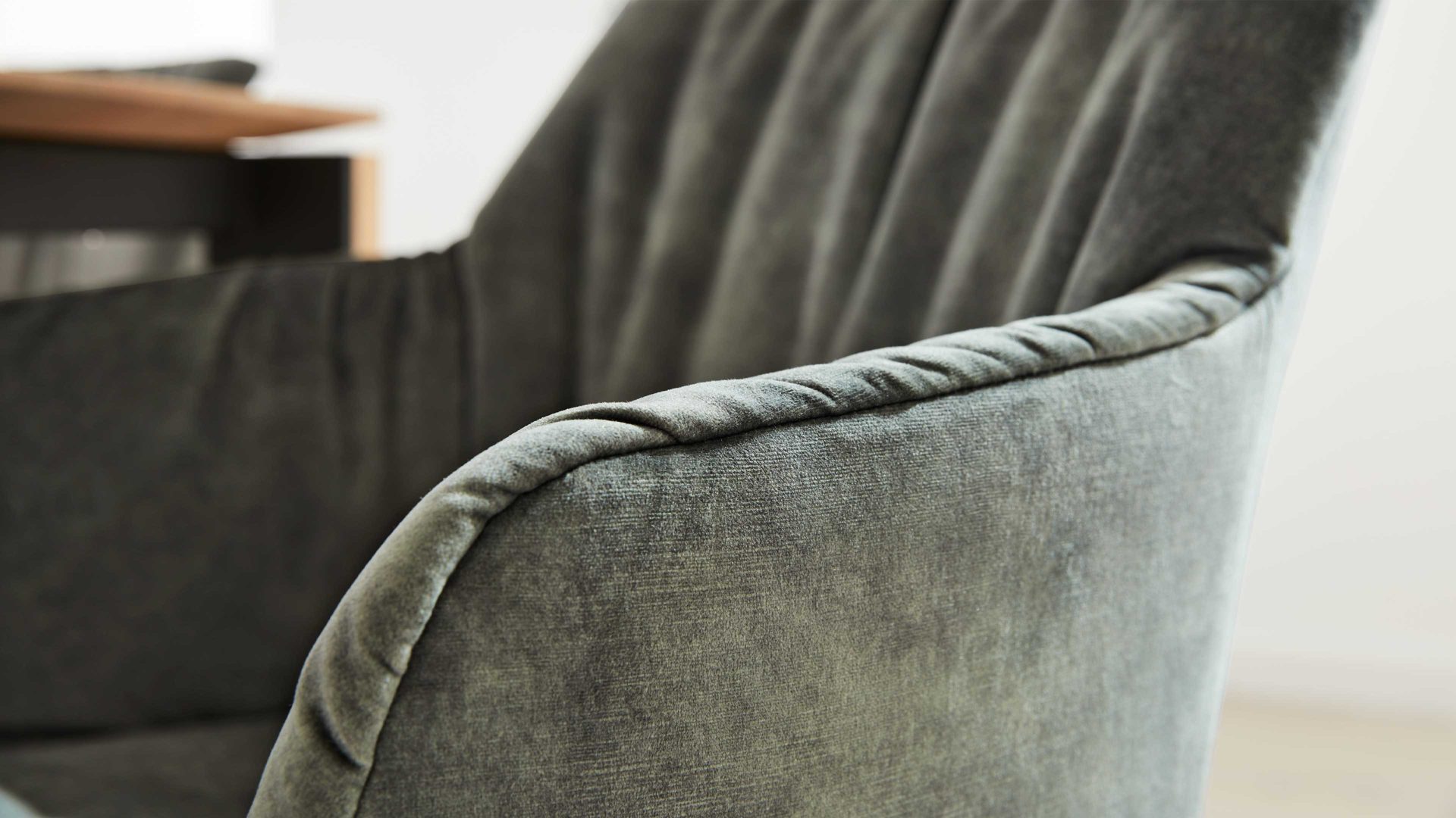 silberfarbener Bezug Calvin & ebenholzfarbene Holzfüße