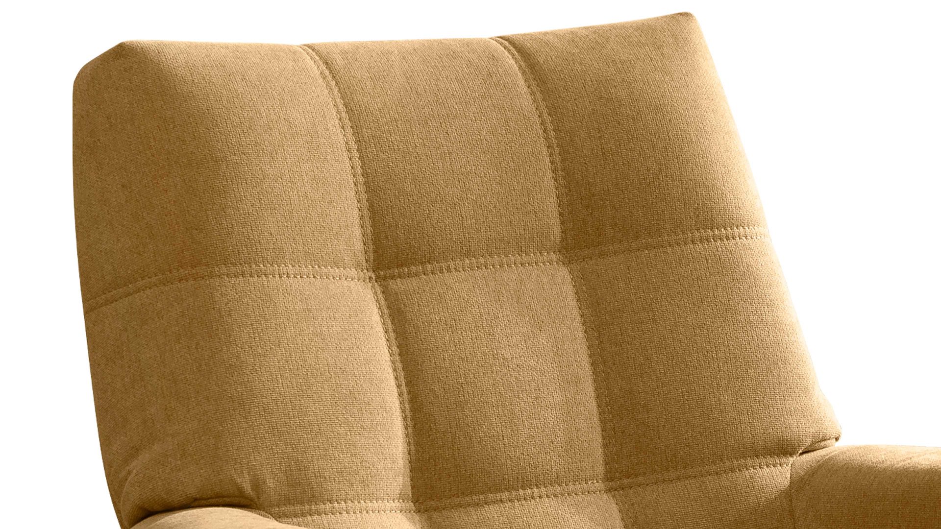 Mit dem honigfarbenen Bezug, der edel gesteppten Sitzfläche und dem mattschwarzen Metallfußring präsentiert sich der KAWOO Relaxsessel SE 53 modern, elegant und gemütlich.