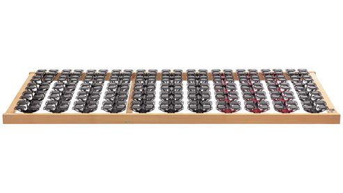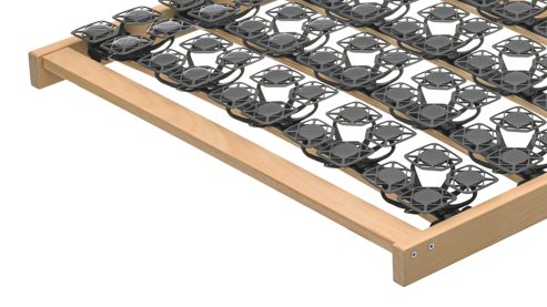 Für die individuelle Unterstützung deines Körpers sorgen 11 Tellerleistenpaare mit jeweils 6 flexiblen Teller-Modulen. Insgesamt kommen bei einer Größe von ca. 100 x 200 cm 66 elastische Teller-Elemente aus langlebigem Hightech-Material zum Einsatz, die eine punktgenaue Druckverteilung ermöglichen. Der Tellerrahmen ist bis maximal 110 kg belastbar und passt sich deinen Bewegungen dynamisch an.