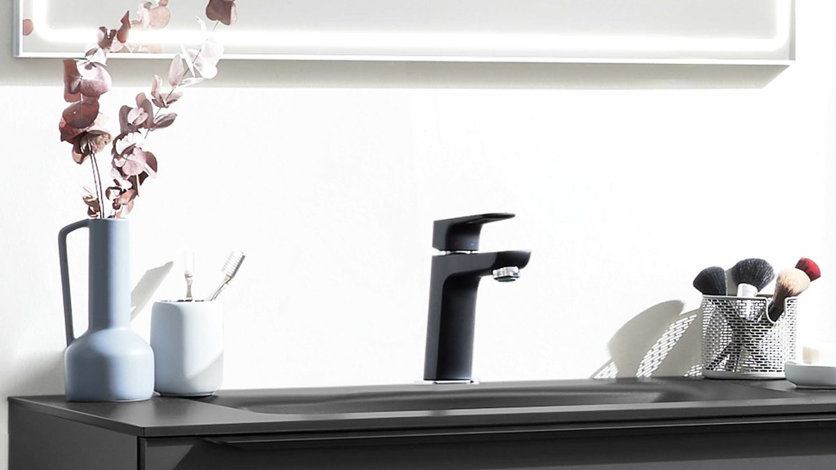Interliving Bad Serie 7945 – moderne Waschtisch-Armatur in Schwarz und Chrom