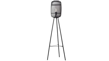 Details schwarze Metall-Lampenfüße hellbrauner Bambus-Lampenschirm Schnurschalter     Maße ca. 45 x 130 cm (B x ...