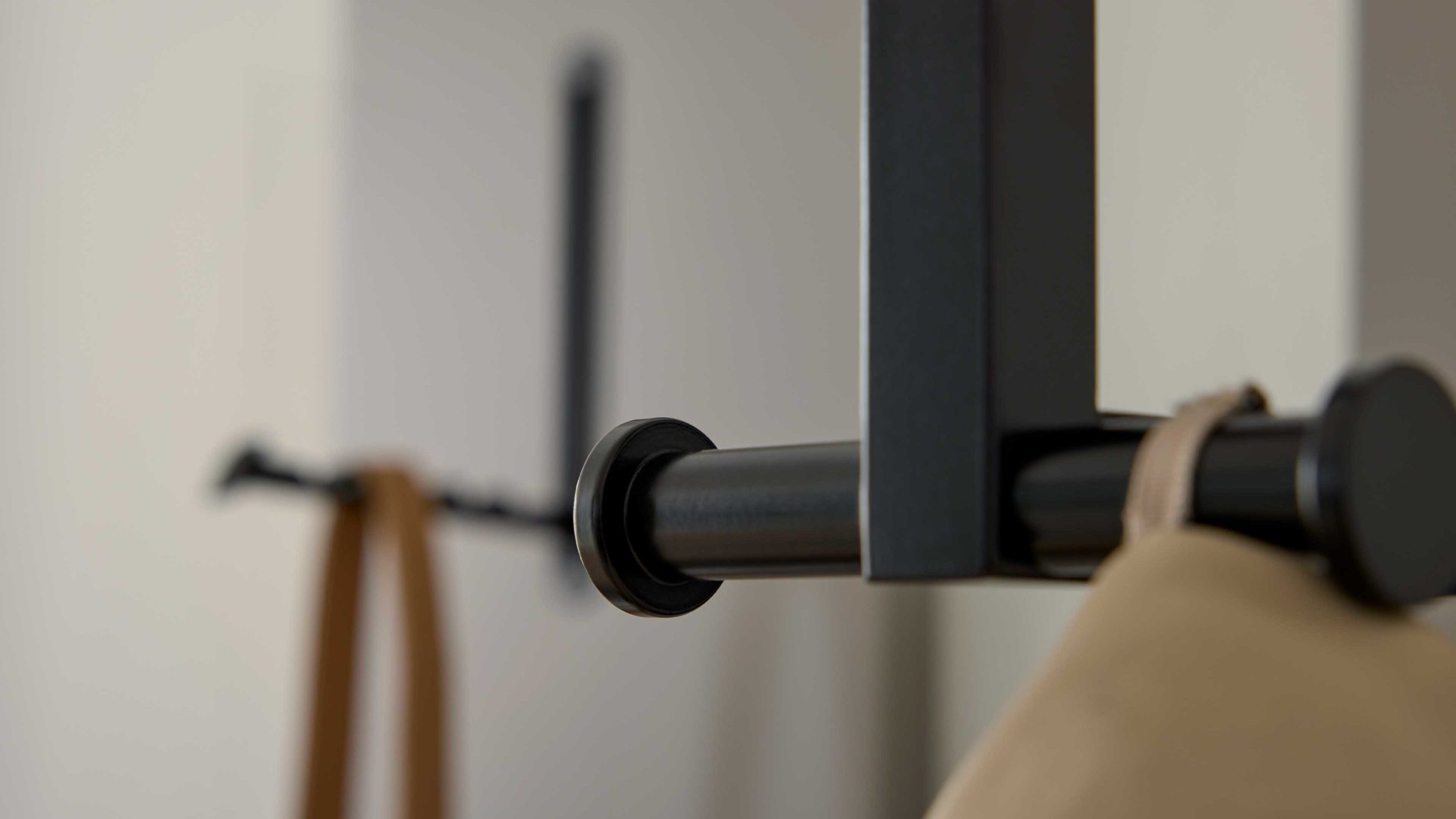 Der Mix aus graubeigem Mattlack und mattschwarzen Metallelementen verleiht dem Möbelstück eine moderne, ruhige Ausstrahlung mit klarer Linienführung. Die hochwertige Verarbeitung macht die Wandgarderobe zu einer stilvollen Ergänzung für dein Zuhause – langlebig, robust und optisch zurückhaltend elegant.