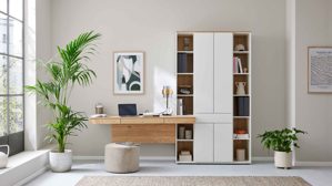 Die hochwertigen Melaminoberflächen der Serie sind kratzfest, UV-beständig, strapazierfähig und pflegeleicht. Der Materialmix aus Tonweiß matt und Risseiche-Nachbildung sorgt für eine moderne, wohnliche Atmosphäre, die sich leicht mit unterschiedlichen Einrichtungsstilen kombinieren lässt.