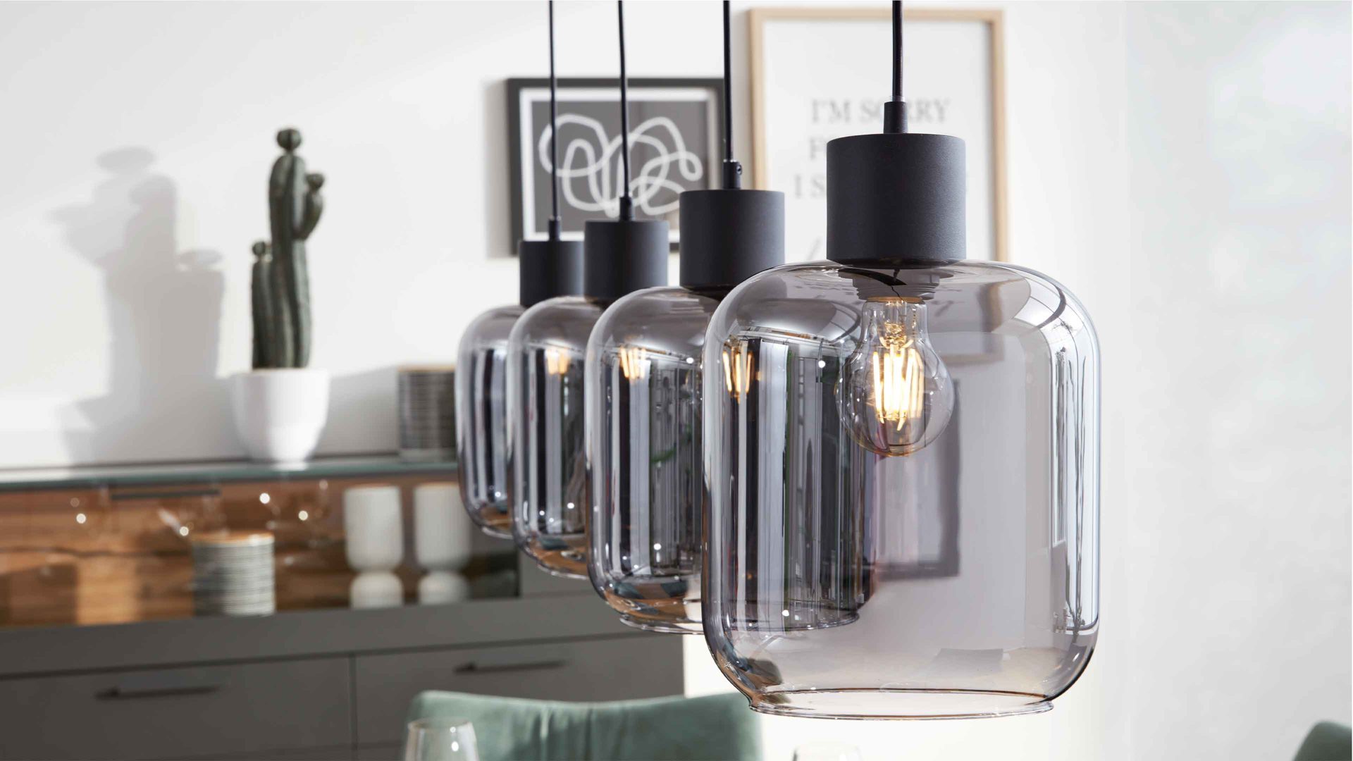 Die elegante Hängelampe aus der Interliving Leuchten Serie 9341 bringt modernen Industrie-Charme in dein Zuhause. Mit mattschwarzem Metall und rauchfarben verspiegeltem Glas vereint sie Eleganz und Coolness in einem klaren, geradlinigen Design. Ob über dem Esstisch, in offenen Wohnbereichen oder über deiner Kücheninsel – diese Pendelleuchte wird zum stylischen Highlight in jedem Raum.