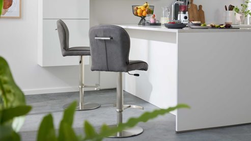 Auf der rechten Küchenzeile erwarten dich das Kochfeld, eine kopffreie Dunsthaube sowie Unterschränke mit Auszügen und Fronten mit Griffmulden. Zwei Geräteschränke integrieren Backofen und Kühlschrank ergonomisch und ordentlich.