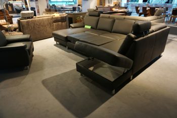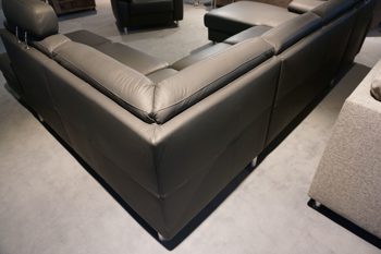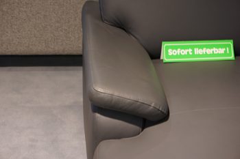 Die Wohnlandschaft in Leder Anthrazit mit einem Stellmaß von links nach rechts ist 1,68 x 3,05 x 2,35 m Rücken Echt und Fuss Metall gebürstet