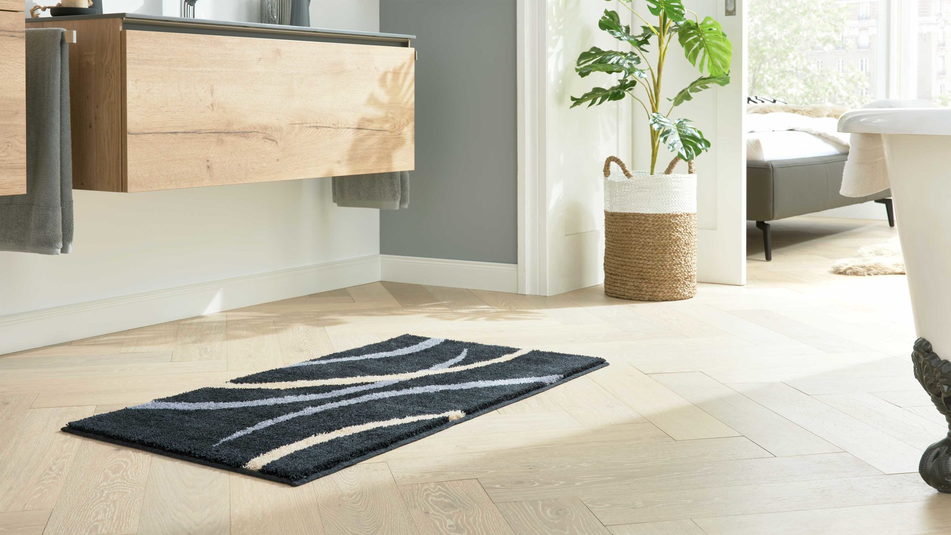 Die Badezimmermatte aus der Interliving Badteppich Serie 9112 bringt funktionalen und dekorativen Mehrwert in Ihr Bad.