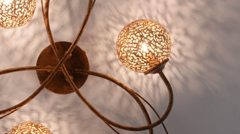 Die Paul Neuhaus LED-Deckenleuchte Greta leuchtet Ihren Wohnbereich wunderbar aus und fungiert zugleich als ansprechendes Dekoelement. Gefertigt aus rostfarbenem Metall in Kombination mit goldfarbenen Lampenschirmen beeindruckt die raffinierte Leuchte gleich auf den ersten Blick. Statten Sie die Deckenlampe einfach mit sechs G9-Leuchtmitteln mit je 40 Watt aus, die sich für die Energieeffizienzklasse A bis G eignen, und nehmen Sie das Lampenmodell direkt in Betrieb.