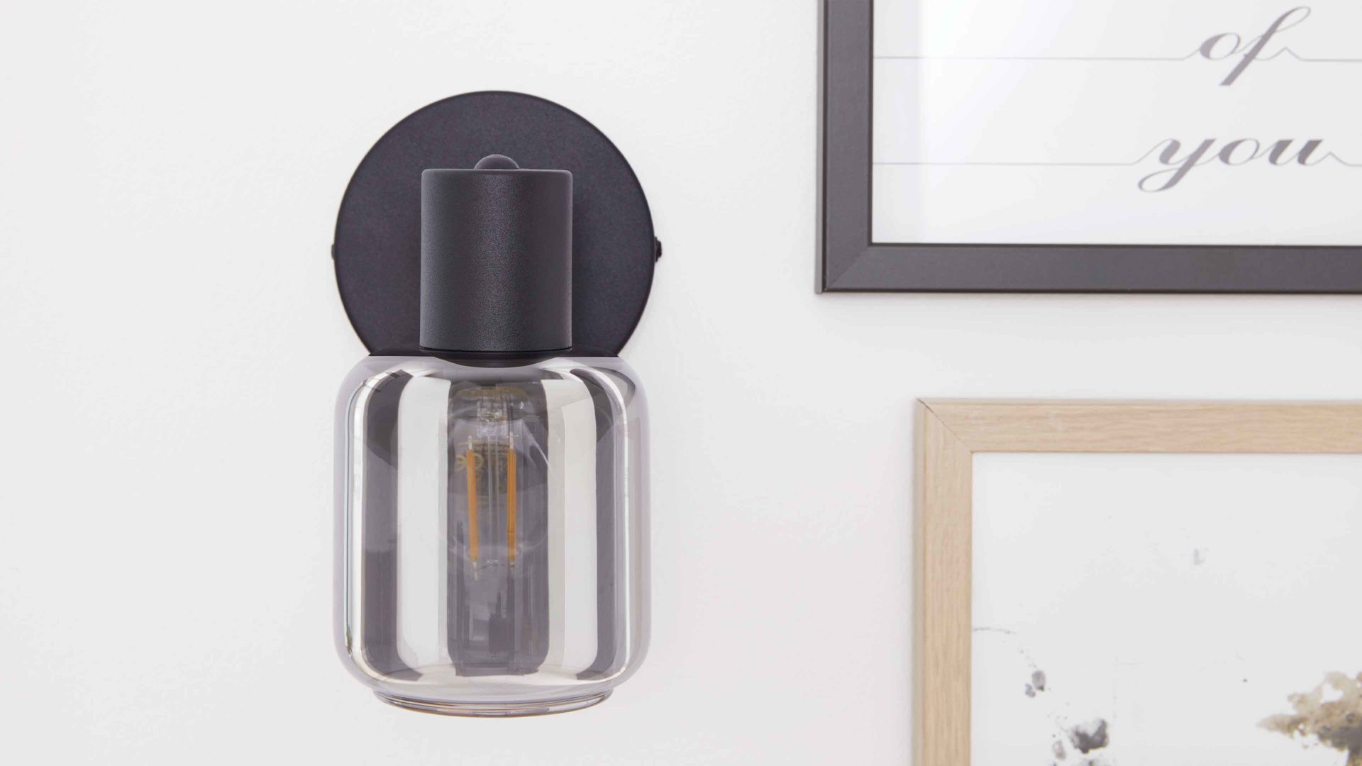 Die elegante Wandleuchte (Typ IL80220932) aus der Interliving Leuchten Serie 9341 bringt markanten Industrial-Charme direkt an deine Wand. Das mattschwarze Metallgestell in Kombination mit dem rauchfarben verspiegelten Glasschirm sorgt für ein edles, urbanes Design mit Charakter. Ob im Flur, Schlafzimmer oder als Akzentlicht im Wohnzimmer – diese Lampe setzt ein stilvolles Statement und schafft ein angenehm modernes Lichtambiente.