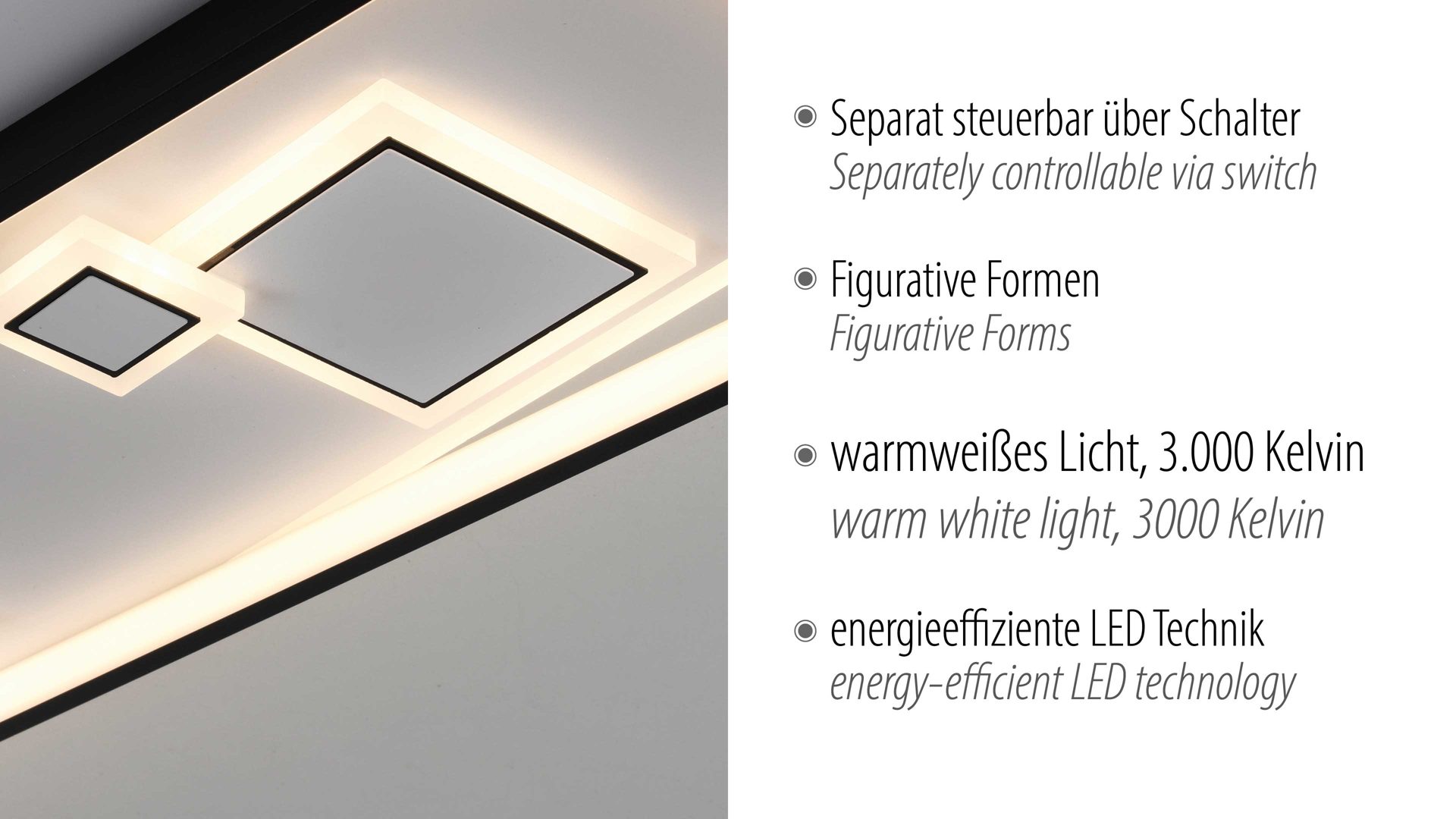 Gesamt-Helligkeit 5100 Lumen mit warmweißen 3000 Kelvin