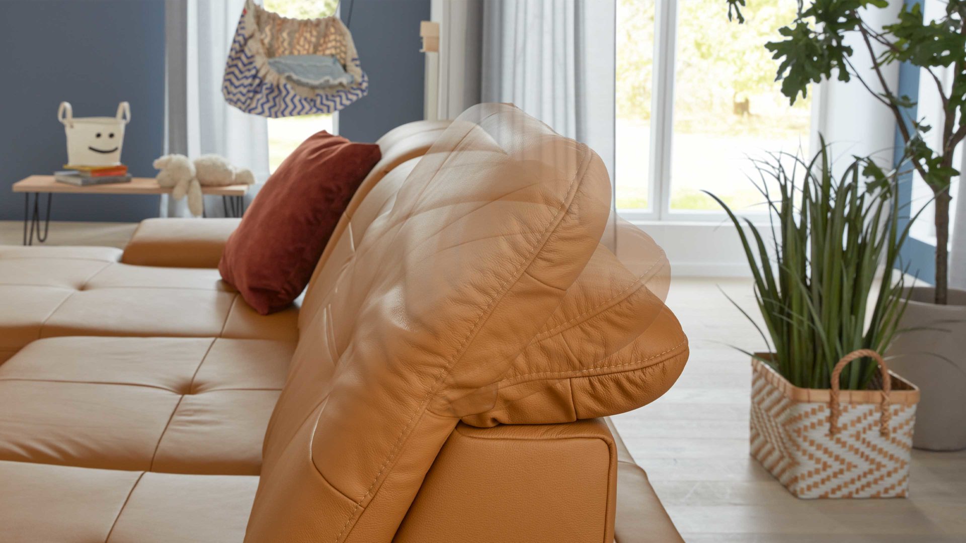 Die manuelle Kopfpolsterverstellung KV mit Rasterfunktion und Faltenoptimierung ist eine Mehrpreis-Ergänzung für die Sofas aus dem Modulmaster-Programm MM-PN1044. Sie ermöglicht es Ihnen, das jeweilige Kopfpolster mehrfach zu verstellen und damit die Position stets an Ihre bevorzugte Kopfhaltung zu adaptieren.
