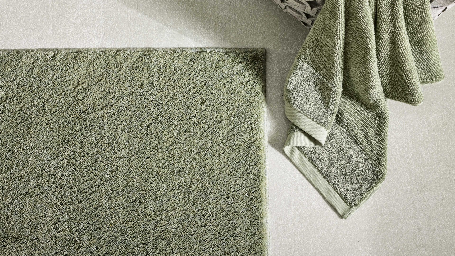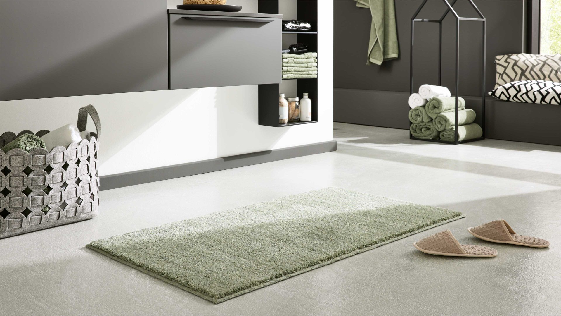 Hergestellt aus jadegrüner Kunstfaser, strahlt der ca. 60 x 90 cm (BxL) große Duschvorleger moderne Eleganz mit einer noblen Note aus, die dem Badezimmer das gewisse Etwas verleiht.