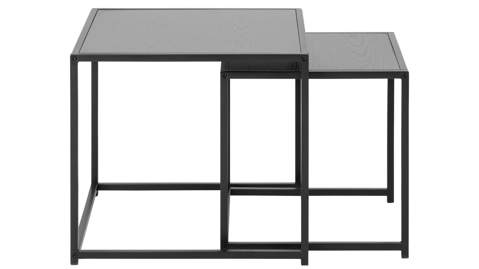 Die schicken Tischplatten in schwarzer Esche-Nachbildung sind der neue Blickfang in Ihrem Zuhause und werten Ihre Wohnräume optisch auf. Das schwarz pulverbeschichtete Stahlgestell mit rauer Oberfläche sorgt für die nötige Stabilität der Tische. Die Melaminoberfläche ist kratz- und stoßfest und damit ausgesprochen robust.