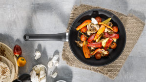 leichter Aluminium-Pfannenkörper für bequemes Wenden und hohem Rand für größere Portionen und sehr guter Wärmeverteilung für ein gleichmäßiges Braten
