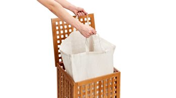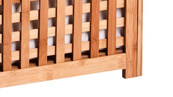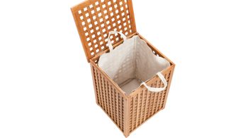 Sein Material liegt im Trend, denn der Wäschekorb ist aus dem nachwaschenden Rohstoff Bambus gefertigt. Das hochwertige und umweltfreundliche Bambusholz ist nicht nur praktisch, sondern auch besonders stylisch und passt zu vielen Einrichtungsstilen. Der entnehmbare und waschbare Innenbeutel des Korbs sorgt für eine lang anhaltende Sauberkeit und Zeitersparnis im Alltag. Zusätzlich weist der unkomplizierte Innenbeutel des Wäschekorbs zwei Griffe und Klettverschlüsse auf, mit denen Sie die tägliche Hausarbeit im Nu erledigen. Ein unkomplizierter und klappbarer Deckel mit Metallscharnieren sorgt für eine widerstandsfähige Qualität.
