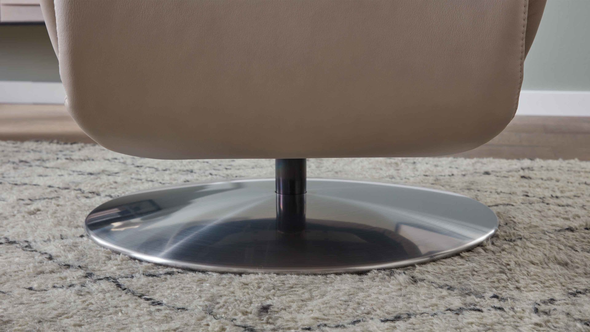 Dieser erstklassige Comfortmaster Relaxsessel B ist mit edel-perlfarbenem LongLife-Leder bezogen, das sich durch seine feine Struktur und den soften Griff auszeichnet. Für stabilen Stand sorgt ein edelstahlfarbener Metall-Tellerfuß. Der einladende TV-Sessel strahlt hohe Qualität und moderne Eleganz aus. Er misst ca. 78 x 115 x 87 cm (BxHxT). Ca. 47 cm beträgt die Sitzhöhe, ca. 52 cm die Sitztiefe. Die Liegelänge beläuft sich im komplett ausgefahrenen Zustand auf ca. 175 cm.