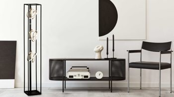 • Die Abbildung zeigt ein Wohnbeispiel, welches auch Dekoration sowie separat erhältliches Zubehör enthält. Im Lieferumfang enthalten ist eine Stehlampe.