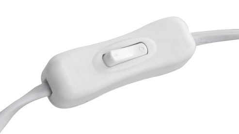 die Wohnraumleuchte wird mit dem Wippschalter am weißen Textilkabel an- und ausgeschaltet