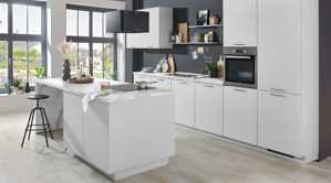 Die Küchenmöbel sind nach Ihren Wünschen planbar und lassen sich mit einer passenden Armatur sowie weiteren Elektrogeräten flexibel ergänzen. So entsteht eine Lösung, die exakt auf Ihre Raumgegebenheiten und Bedürfnisse abgestimmt ist.