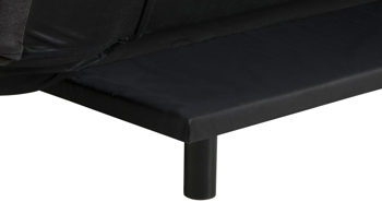 Dieses edle Schlafsofa mit weichem dunkelgrauen Stoffbezug und mattschwarz pulverbeschichteten Füßen lädt direkt zum Ausruhen, Schlafen und Träumen ein. Ungewöhnlich ist die futuristisch anmutende Form, die sehr reduziert und klar wirkt. Für Bequemlichkeit sorgen die üppigen Polster mit Steppnähten an Sitz- und Rückenfläche. Das Bettsofa bietet Sitzplatz für zwei Personen.