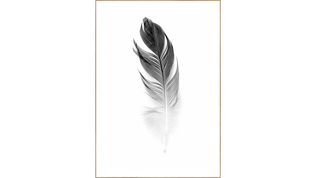 Kunstdruck Soft Feather | bedrucktes Aluminium | schmaler Eichenholzrahmen | Maße ca. 70 x 100 cm (BxH) | auch auf Seidenpapier hinter Klarglas erhältlich