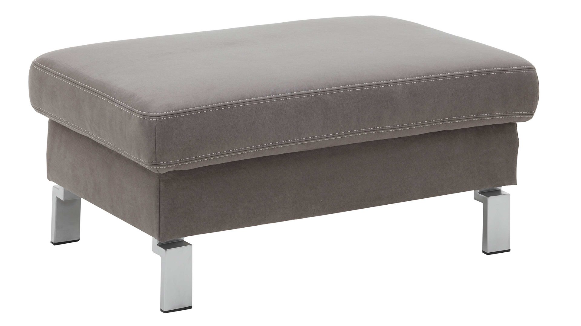 Der funktionale Polsterhocker wartet mit praktischem Stauraum auf. Der Hocker mit Maßen von ca. 70 x 45 x 70 cm (BxHxT) begeistert nicht nur mit seinem fangofarbenen Stoffbezug und seinen glänzenden Chromfüßen, sondern auch mit einer legeren Federkernpolsterung.