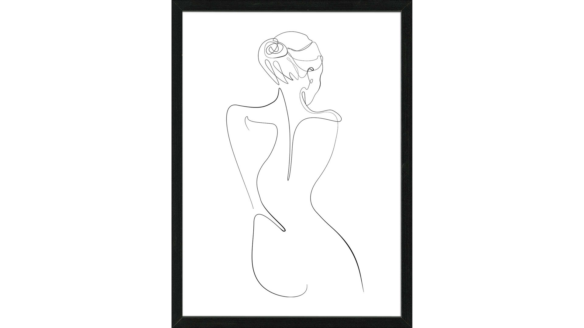 PRO®ART Kunstdruck Scandic Living | Motiv Line Art Back View I, Schwarz auf Weiß | schwarz ummanteltete MDF-Leisten | Papier auf Buchbinderkarton hinter Floatglas | Maße ca. 55 x 75 x 3 cm (BxHxT) | Made in Germany | Kunstdruck-Serie