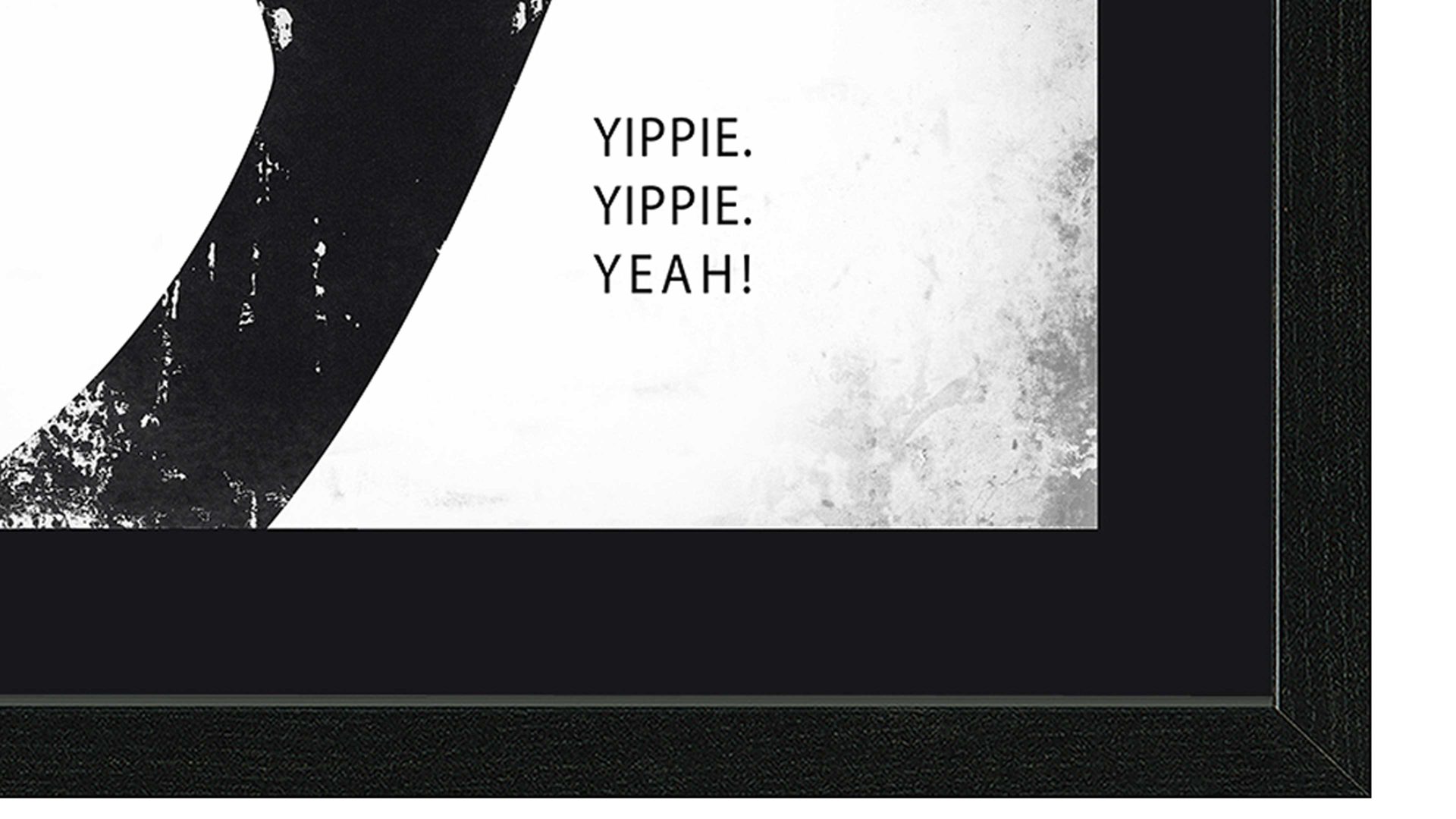 das Bild ist staubgeschützt hinter Floatglas und rundum mit schwarze ummantelteten MDF-Leisten Country eingefasst